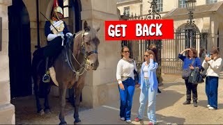She stepped inside the box then gets what she deserves! A dramatic and cautionary moment unfolds as a tourist deliberately steps inside the restricted white box at Horse Guards Parade.