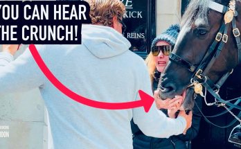 HORSE BITES DOWN ON WOMAN’S HAND! Horse snaps at outstretched hand, biting down; woman recoils in pain as guard intervenes …