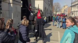 (GET OFF) SHE PULLS ON THE REINS! “Get off!” she shouts as a tourist pulls on the reins! The sudden action startles the King’s Guard horse, and the guard quickly …