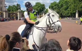 POLICE HORSE LIKES A GOOD NECK RUB AT BUCKINGHAM PALACE! A police horse at Buckingham Palace clearly enjoys a good neck rub! As onlookers watch, the majestic animal relaxes and …