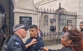 The kings Guard makes way for police carrying a man out of horse Guards parade! King’s Guard clears a path …