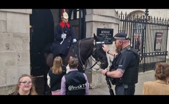 mod police officer Encourages special special needs kids to stroke the horse ! A kind police officer helps children with special needs gently stroke the King’s horse — a beautiful …