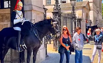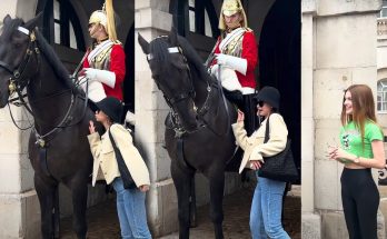 Unbelievable: Royal Horse’s Reaction to Tourists’ Kindness! A remarkable moment at Horse Guards as the Royal horse responds joyfully to tourists’ acts of kindness!