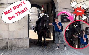 Horse Says “That’s Enough!” to Pushy Tourist! A stubborn tourist kept trying to touch the King’s Horse despite clear signs to stop. Finally, the majestic animal had enough and reacted …