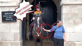 Guard Screams DON’T TOUCH THE REINS! A tense moment at Horse Guards Parade as a tourist reaches for the horse’s reins — and the King’s Guard immediately shouts a firm …