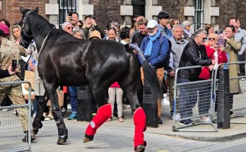 The King’s Guard and Horses preparing for The Elizabeth Cup at Barracks! The King’s Guard blocked the disrespectful man, holding …