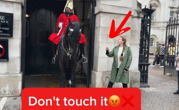 Girl Tries to Touch the Royal Guard’s Horse Big Mistake! The girl reaches out to touch the Royal Guard’s horse, …