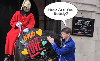 Sweet Moment, Brave Little Girl Touches the Kings Guard Horse! A sweet moment as a brave little girl gently touches …