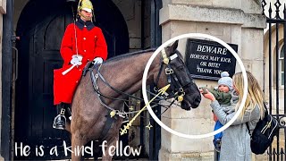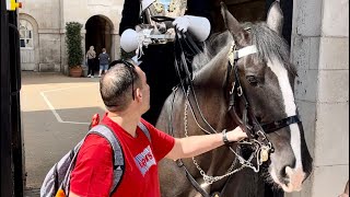 Very beautiful and kids Loving horse, Royal king’s guards.! A silly tourist steps into the guard box, prompting a command …
