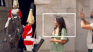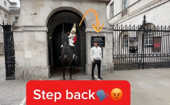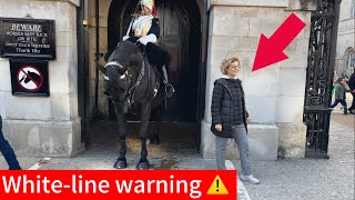 Royal Guard Warns Lady to Step Back Behind the White Line! The Royal Guard firmly warns a lady to step …
