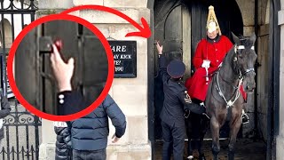 Man wearing full face balaclava grabs the reins The kings guard shouts! Watch more