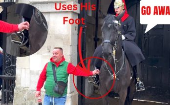 Tourists Celebrate the King’s Guard Tradition! The guard warns sharply, “Watch his foot, go away!” as the horse shifts suddenly, …