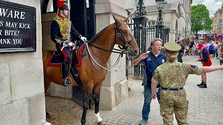 POLICE STOP PEOPLE TOUCHING THE HORSE at Horse Guards! A tense moment at Horse Guards Parade as police step in …