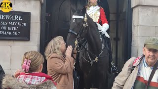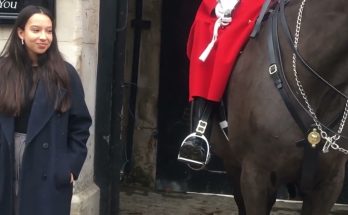 Girls ran away when Royal Guard Horse tried to push her! A surprising moment unfolded at the Horse Guards Parade …