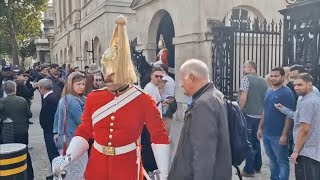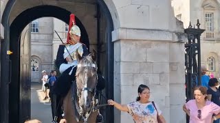 King’s guard bumps in to tourist then roars like a lion! A shocking and unforgettable moment occurred at Horse Guards …