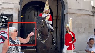 She just pulls the reins towards her self! A shocking and tense moment unfolded at Horse Guards Parade when a …