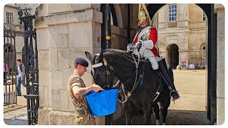 Guard Brings Water For a Thirsty Horse!