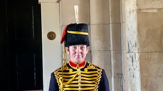 King’s Guard in Cavalry Trooper Uniform GIVES water to the horse! Watch more