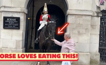 Tourist Feeds King’s Guard’s Horse ! A delightful moment unfolds at Horse Guards Parade as a kind tourist offers a …