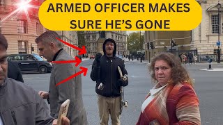 Armed Officer Makes Sure This Crazy Is Moved On From The King’s Guards. Chaos erupts at Horse Guards Parade when …