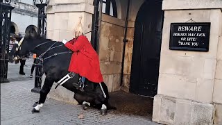 Kings guard horse slips falls guard stays mounted . A tense and breathtaking moment unfolded at Horse Guards Parade when …