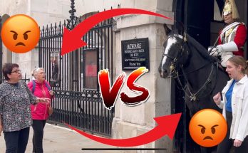 Tourist VS Tourist Arguing About Touching The King Horse! A chaotic and amusing scene unfolded at Horse Guards Parade when …