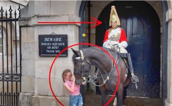 Horse Wanted to Bite her but King’s guards didn’t Allow it! A horse reacts defensively, attempting to bite a visitor …
