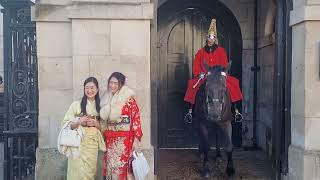 Two Japanese tourists pose with the kings guard ! Watch more
