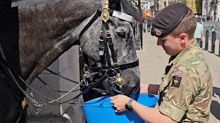King’s Horse drinks, then smiles at the King’s Guard on a super hot day! A heartwarming moment unfolded on a …