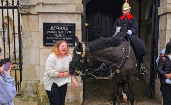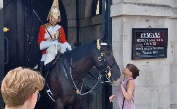 Heartwarming: Guard Lets Woman Stroke the Horse! A touching moment at Horse Guards Parade as a King’s Guard gently nods …