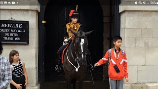 Guard Shouts Warning After Horse Nips at Reins! A tense moment at Horse Guards Parade as a horse nips at …