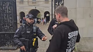 Man squares up to police out side horse guards! Watch more
