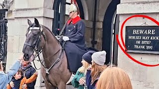 King’s guard leans forward and makes the tourist let go of the reins! Watch more