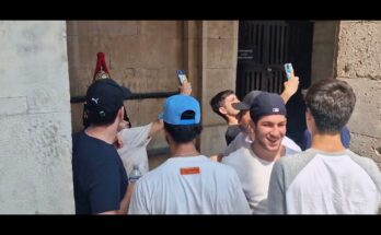 Group of Tourists Mocking the Kings Guard for more than 10 minutes! At Horse Guards, a group of tourists crossed …