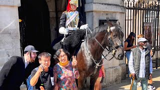 Disrespectful tourist got the king’s guard’s horse reins and!
