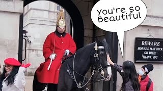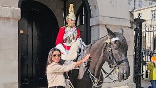 Horse Tries To Bite Her! Horse Tries to Bite Her! – A tense moment as the King’s Guard horse snaps …