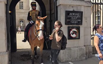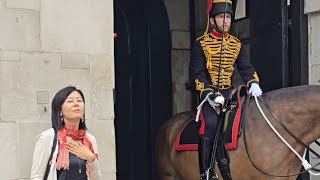 ANOTHER PHONE ZOMBIE. CHINESE TOURIST SALUTES THE GUARD GET OUT ! Caught up in their phone, a Chinese tourist forgets …